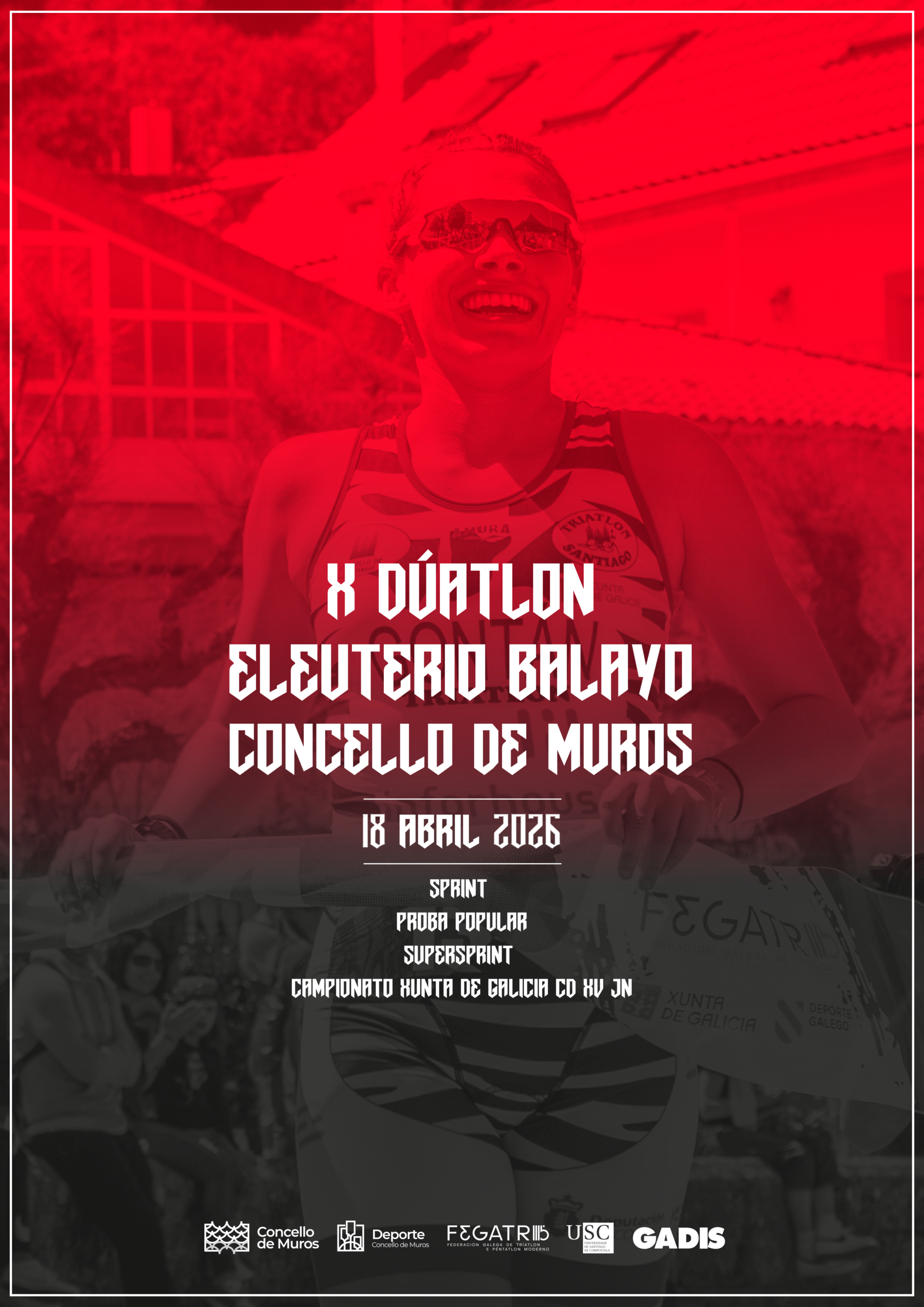 X Dúatlon “Eleuterio Balayo” Concello de Muros – Proba Popular SprintX Dúatlon "Eleuterio Balayo" Concello de Muros - Proba Popular SprintData 18 de Abril de 2026Categoría duatlón Eventos 2026 Outros eventosEtiquetar fegatriVER MÁIS