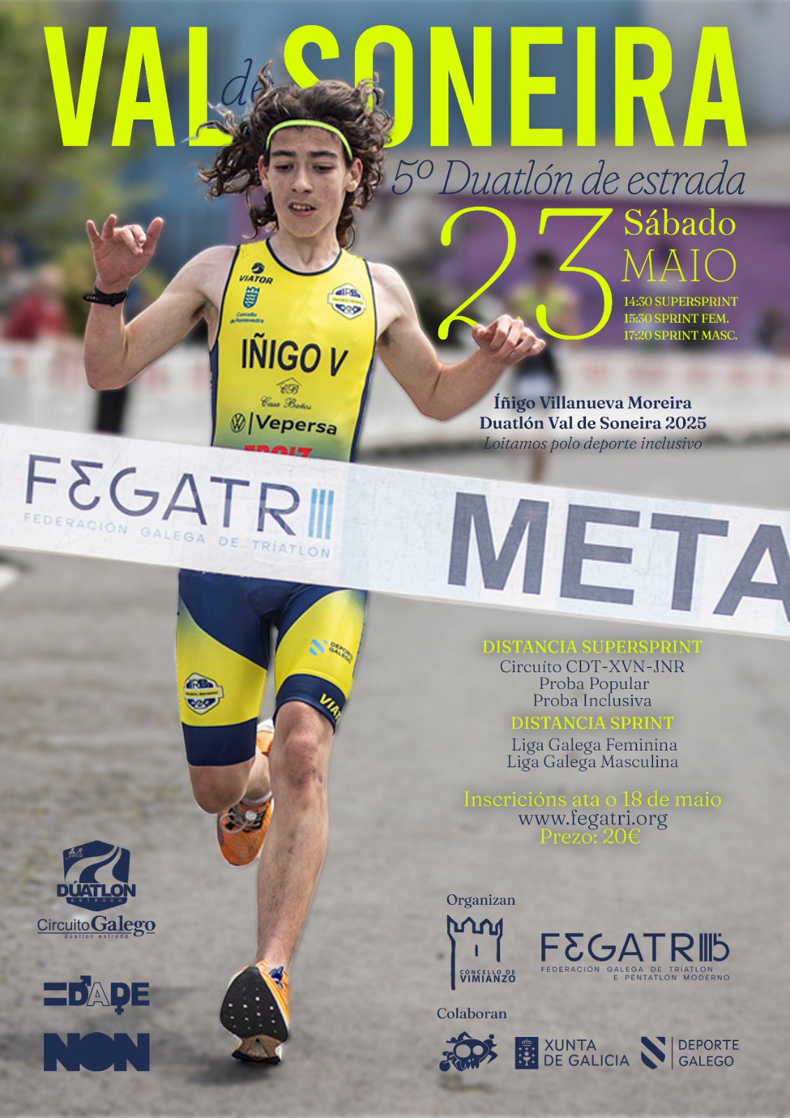 V Dúatlon Val de Soneira- Concello de Vimianzo (Liga Galega de Dúatlon de Estrada)V Dúatlon Val de Soneira- Concello de Vimianzo (Liga Galega de Dúatlon de Estrada)Data 23 de Maio de 2026Categoría duatlón Eventos 2026 Liga GalegaEtiquetar fegatriVER MÁIS