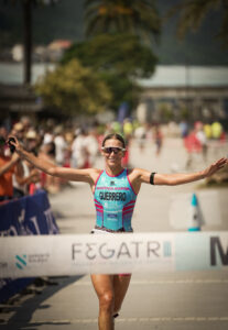 No segmento ciclista, o trío de cabeza mantivo a súa renda e deixou a Serrat sen opcións, ata ser absorbido polo segundo grupo perseguidor. A chegada á T2 confirmou a escapada: Suárez, Basanta e Rilo afrontaban a carreira a pé con 40 segundos de marxe sobre un pelotón moi estirado.